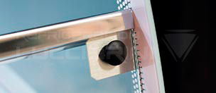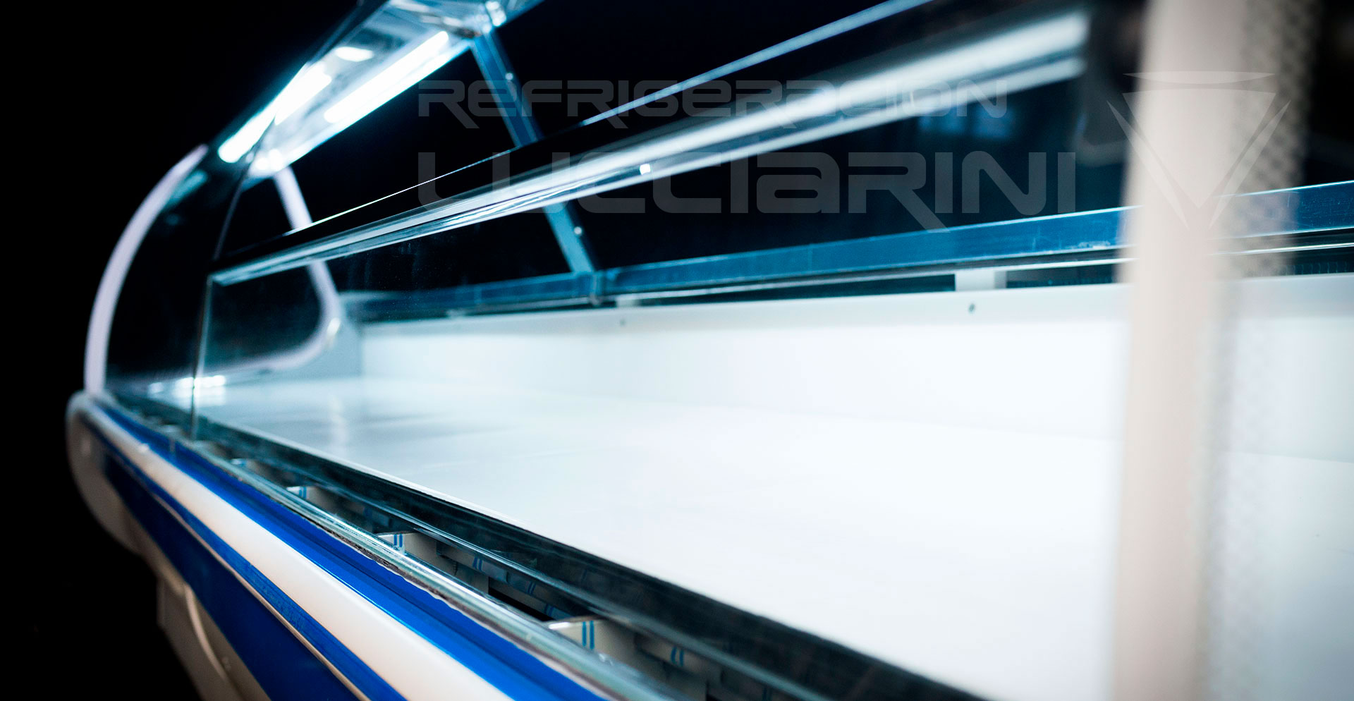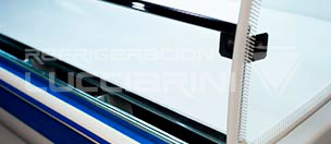 Estante de vidrio, ganchera, puertas de acrílico, cortinas de enrollar pvc.